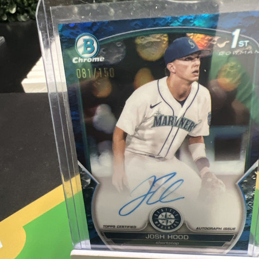 Josh Hood 2023 Bowman Chrome 1st Auto Blue Lunar Refractor /150 Seattle Mariners